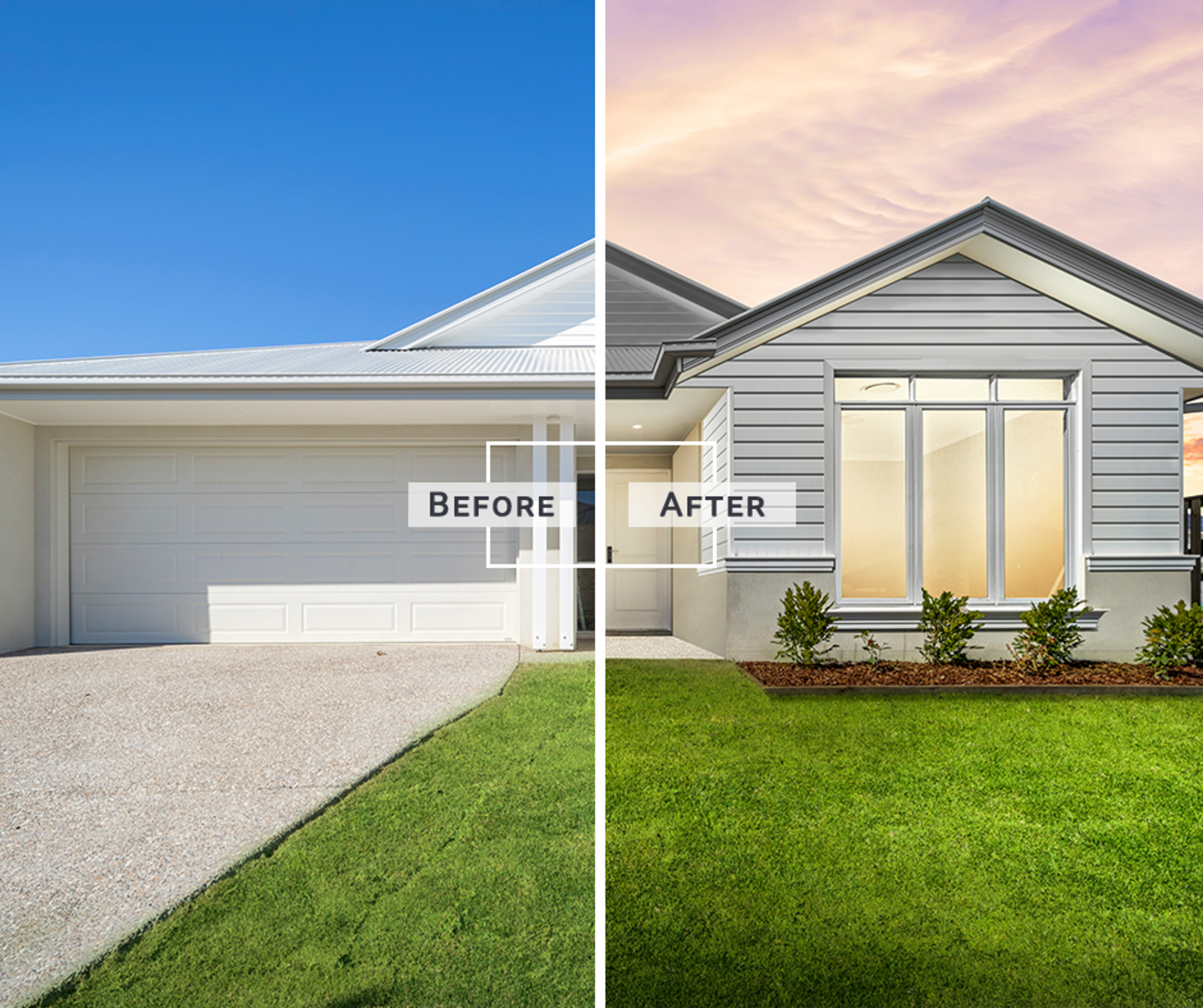 Want the twilight look without the late nights shooting the property? Look no further, our photoshop experts can make daylight images look like it was shot at dusk/twilight!